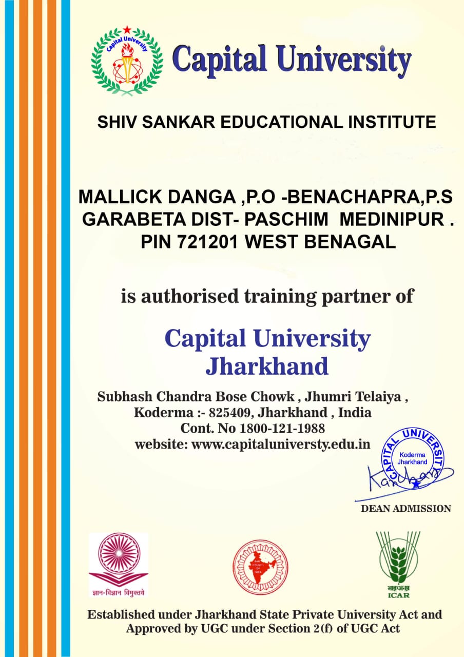 SHIV SANKAR EDUCATIONAL INSTITUTE (SSEI) is a national program of information technology education and development. SSEI Registered as Autonomous Body,under Govt of West Bengal based on central govt TR act,1882(Govt of India). SSEI Registered under Socity Registry Act 1962(Govt of India). Registered under MHRD (CR Act)(Govt of India). SSEI An ISO 9001-2015 Certified autonomous body. SSEI Registered under Department of Labour Govt of NCT (Delhi). SSEI Registered under National Career Service Govt of NCS (Delhi). SSEI Registered under NITI AAYOG(Govt. of India). SSEI Registered under Ministry of youth Affairs And Sports of Fit India,(govt of India). SSEI Registered under Ministry of Micro Small and Medium Enterprises of MSME,Govt. of India.SSEI Registered under National Career Service(Skill-Provider(Delhi))